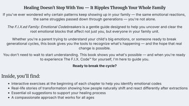 This extended time allows us to go deeper into your unique emotional patterns, clear multiple codes, and create a personalized roadmap for lasting calm and connection.